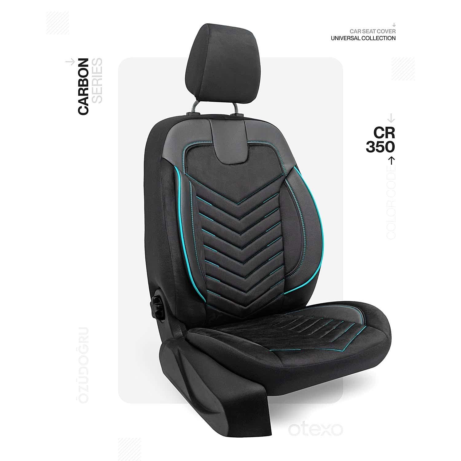 Oto Kılıf ( Carbon / Standart ) - CR-350-Siyah/Turkuaz İp